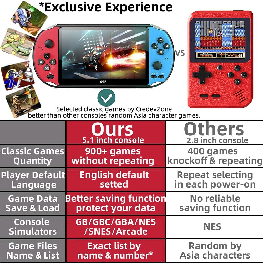 900+ Featured Classic Games: This X12 console features a nostalgic 900 games, a unique game file and folder listing system to find the games you want to play faster.